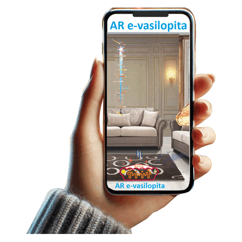 Πώς φαίνεται στο κινητό (AR κάμερα / κομμάτι/Φλουρί) Δείτε στο τέλος (εικόνα 2) πως φαίνεται στα τραπέζια.