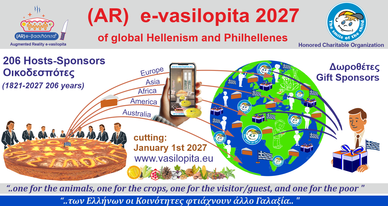 With your registration, this unique GATHERING of Hellenism and Philhellenes everywhere becomes even greater, and you support the goals of the e-Vasilopita of Hellenism and Philhellenes worldwide, which are: